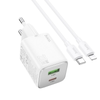 Сетевое зарядное устройство Hoco N41 USB/ Type-C PD QC white + кабель Type-C to Lightning