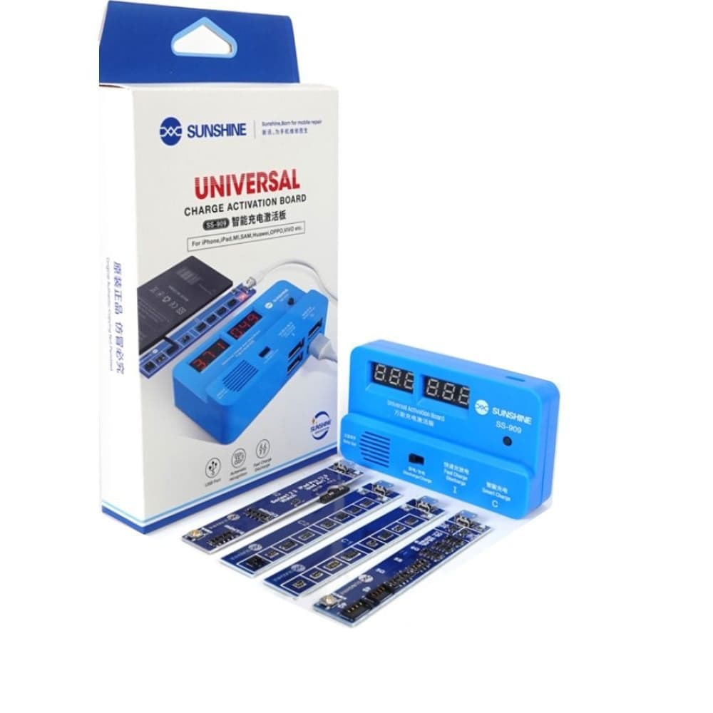 Набор плат активации и зарядки аккумуляторов Sunshine SS-909 с цифровой индикацией (Apple iPhone 4G-X, iPad, Huawei, Oppo, VIVO, MI, SAM, кабеля Micro USB)
