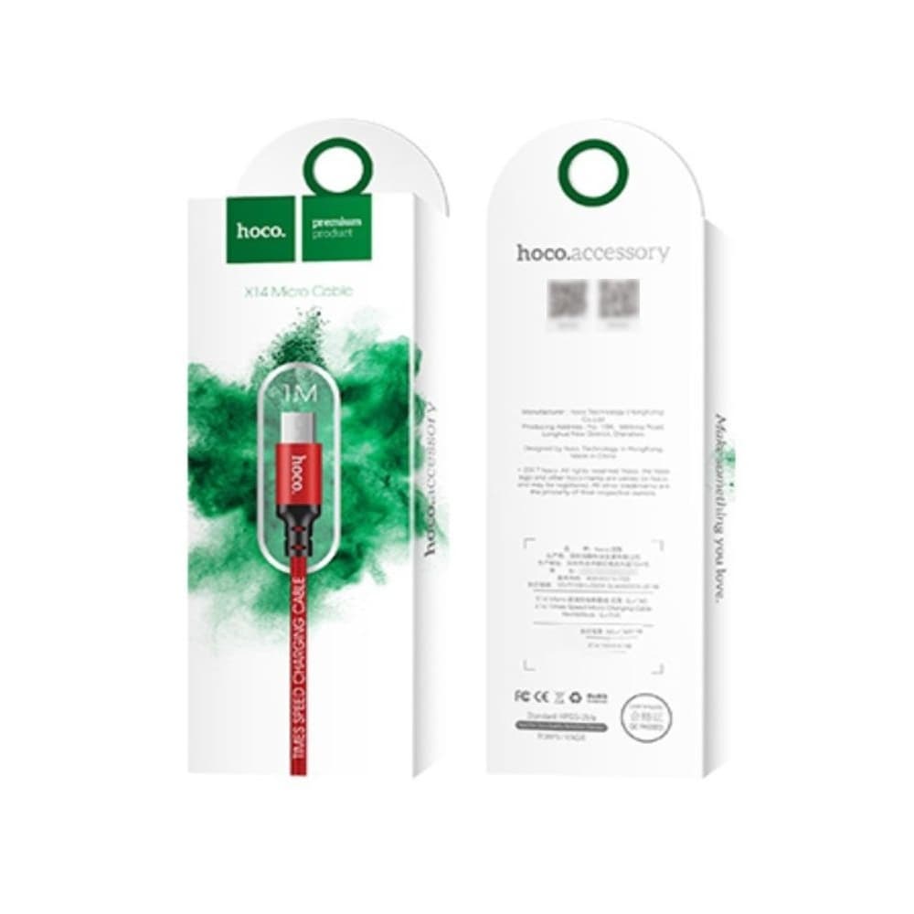 USB-кабель Hoco X14, Micro-USB, 100 см, в нейлоновой оплетке, 2.4 А, красный [ В офисе 0 шт. ] [ На складе есть ]