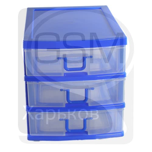 | Количество секций | 3 | | Цвет ящиков | прозрачный | | Цвет основы | синий | Материал