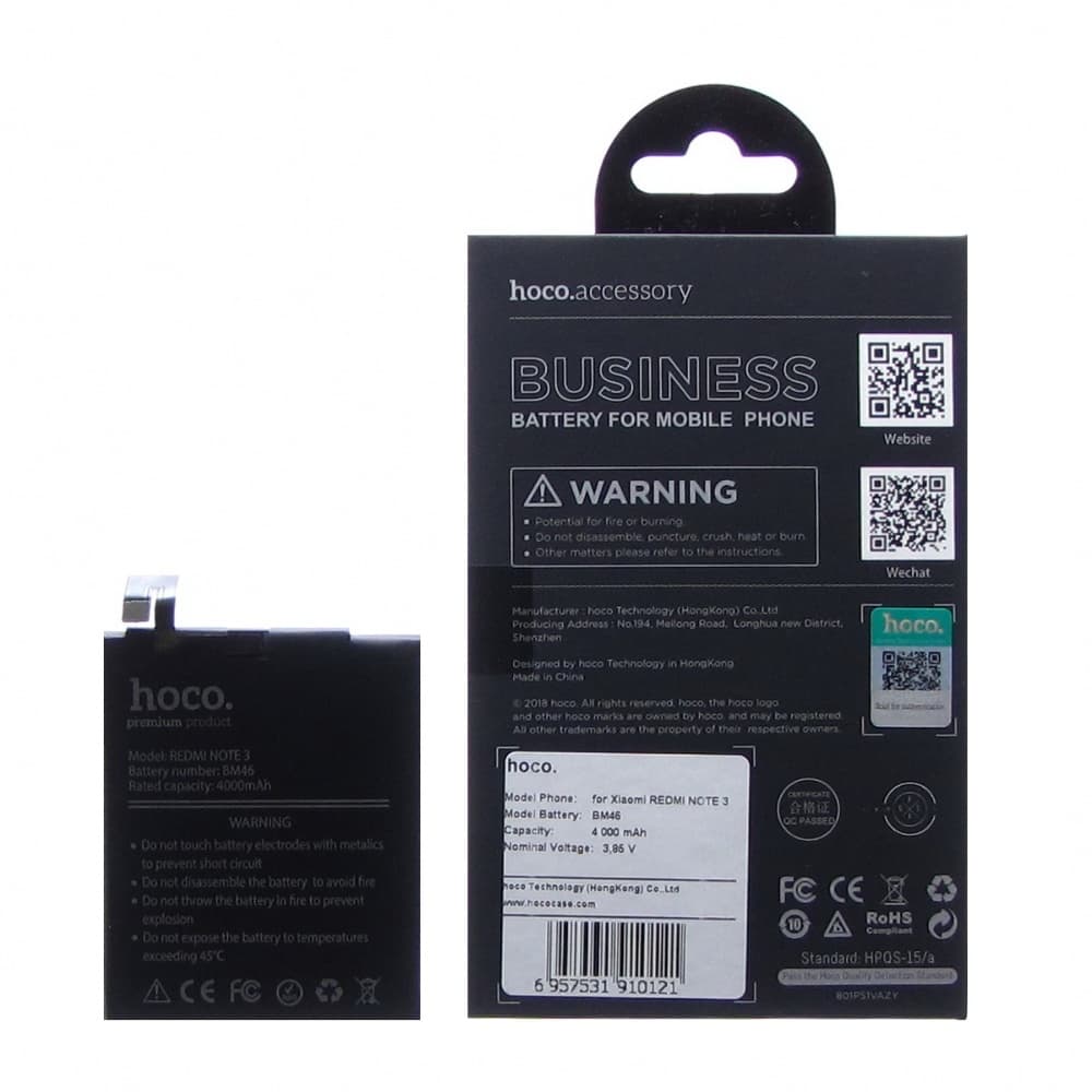 Довідка: HOCO - виробник акумуляторів за технологією Xiaomi. Реальна ємність відповідає заявленій Докладніше. Повністю сумісні з Xiaomi Redmi Note 3, Xiaomi Redmi Note 3 Pro, Xiaomi Redmi Note 3i Pro SE. Мають ресурс як у оригінала.