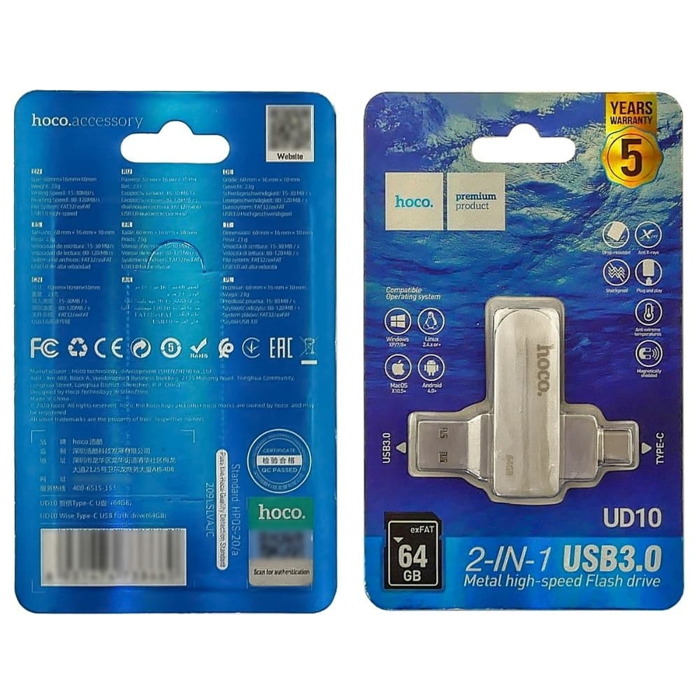 USB-накопитель Hoco UD10, 64 GB, Type-C, USB 3.0, 2 в 1, серебристый [ В офисе 0 шт. ] [ На складе есть ]