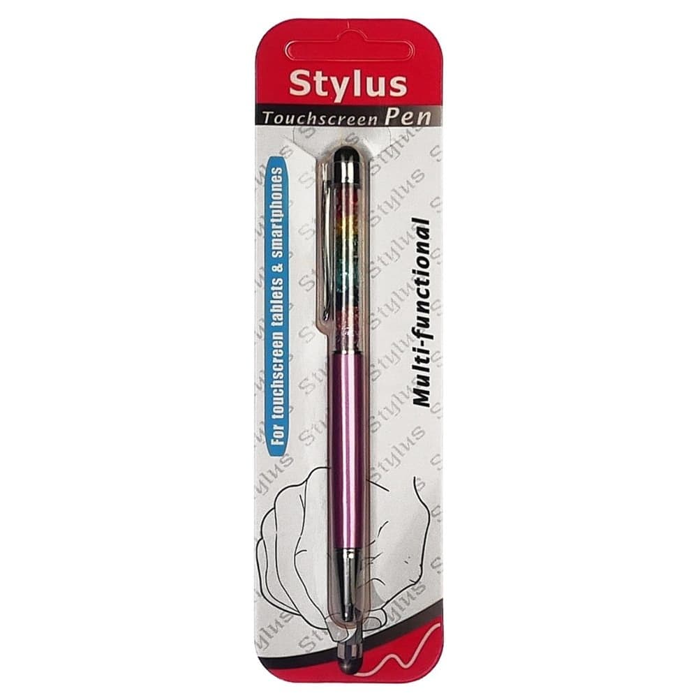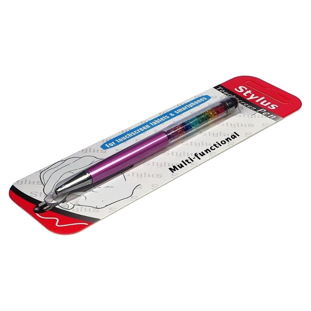 Стилус емкостный, с шариковой ручкой, металлический, фиолетовый, с кристаллами цветов радуги Студийное фото