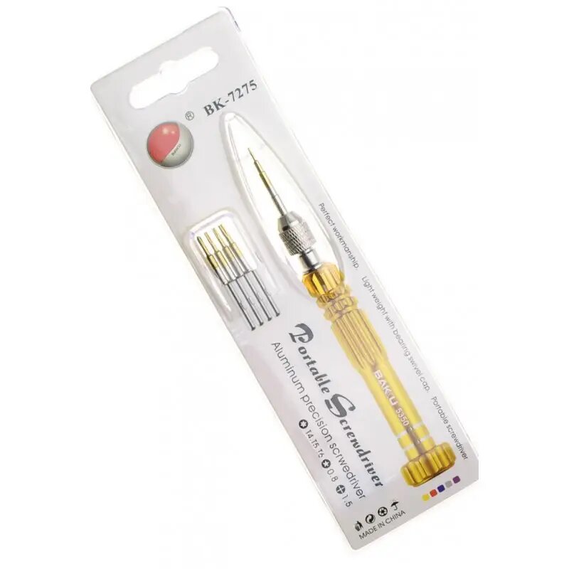 Набор отверток BAKU BK-7275A (Ручка с насадками: T4, T5, T6, +1.5, пенталоб 0.8)