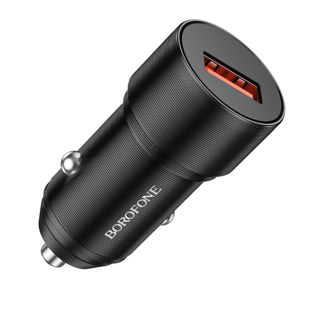 Автомобильний зарядний пристрій Borofone BZ19A 1 USB Quick Charge 3.0, черное | зарядка, зарядное устройство Студийное фото