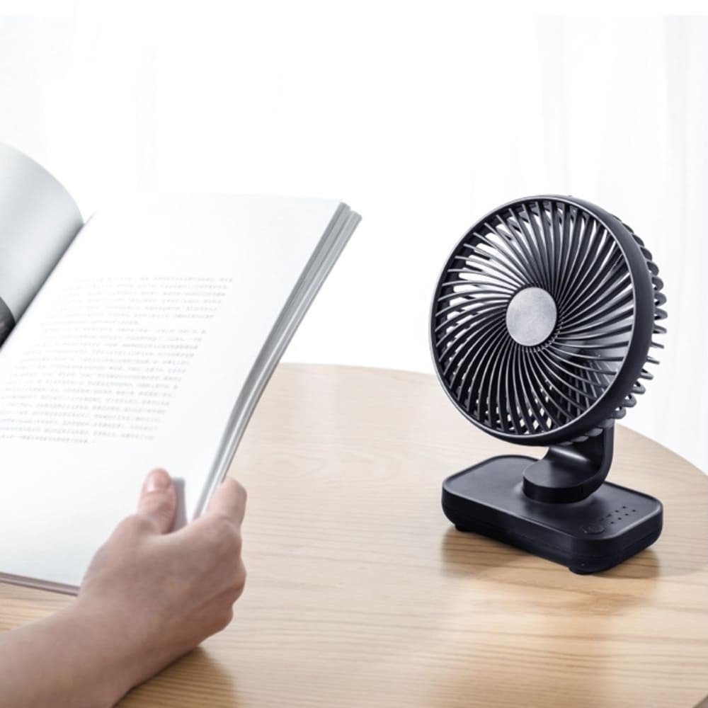 Компактный и тихий настольный вентилятор со встроенным аккумулятором. Имеет 4 скорости работы. ЮСБ-кабель в комплекте.