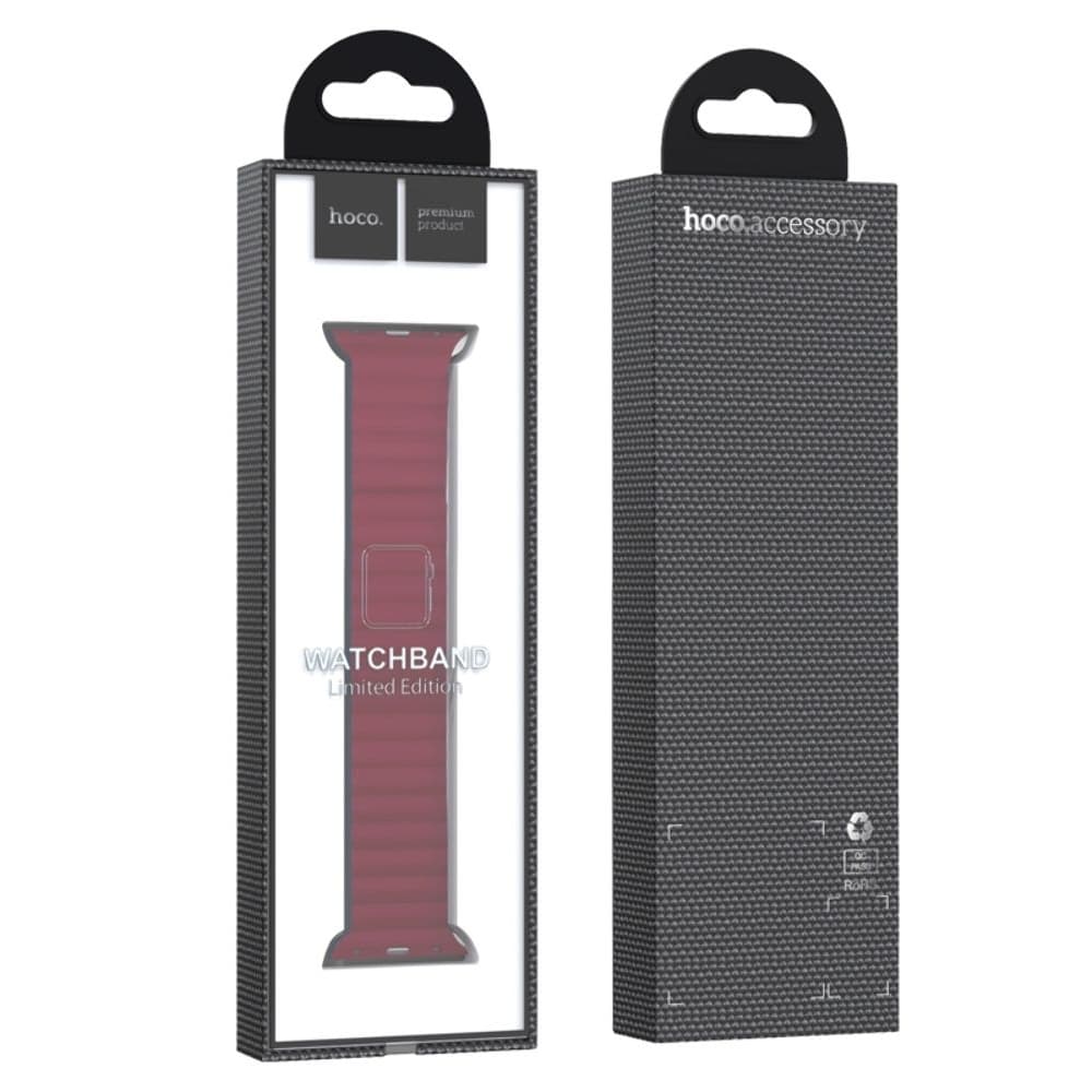 Ремінець силіконовий Hoco iWatch WA07 magnetic, 42, 44, 45, 49 мм, grey red wine | ремешок силиконовый Студийное фото