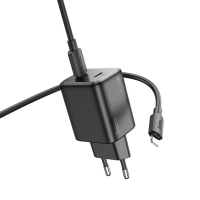 Сетевое зарядное устройство Hoco N42 2 Type-C Power Delivery (45 Вт), чорний + кабель Type-C на Lightning [ В офисе 0 шт. ] [ На складе есть ]