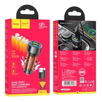Автомобильний зарядний пристрій Hoco NZ12 2 USB, Quick Charge, 36W transparent orange + кабель USB to MicroUSB | зарядка, зарядное устройство Студийное фото