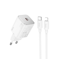 Сетевое зарядное устройство Hoco N40 Type-C Power Delivery (20 Вт), білий + кабель Type-C на Lightning