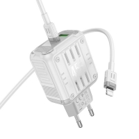 Сетевое зарядное устройство Hoco C136A USB/ Type-C PD 45W white + кабель Type-C to Lightning Студийное фото реального товара